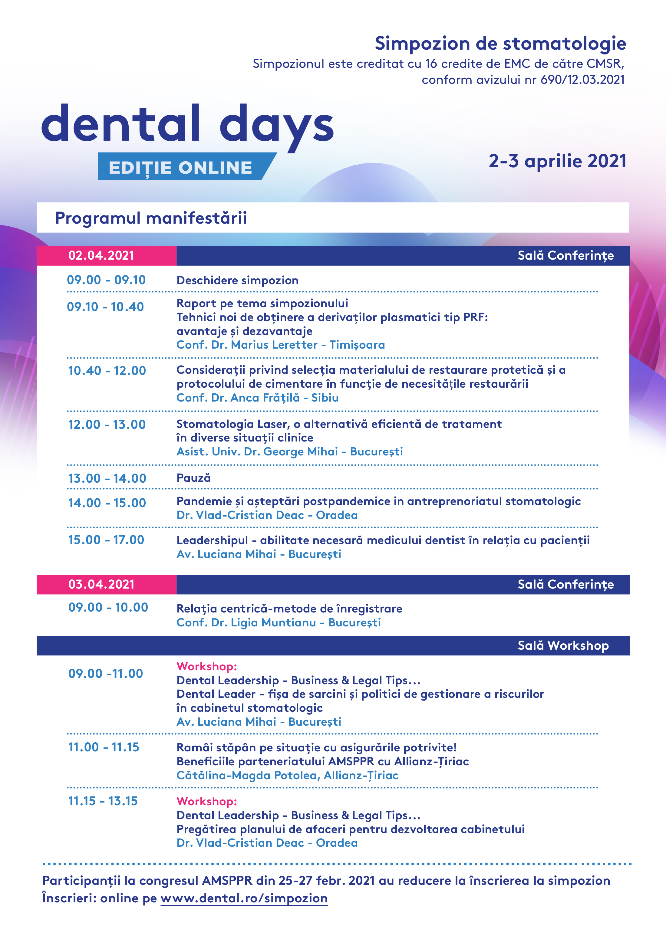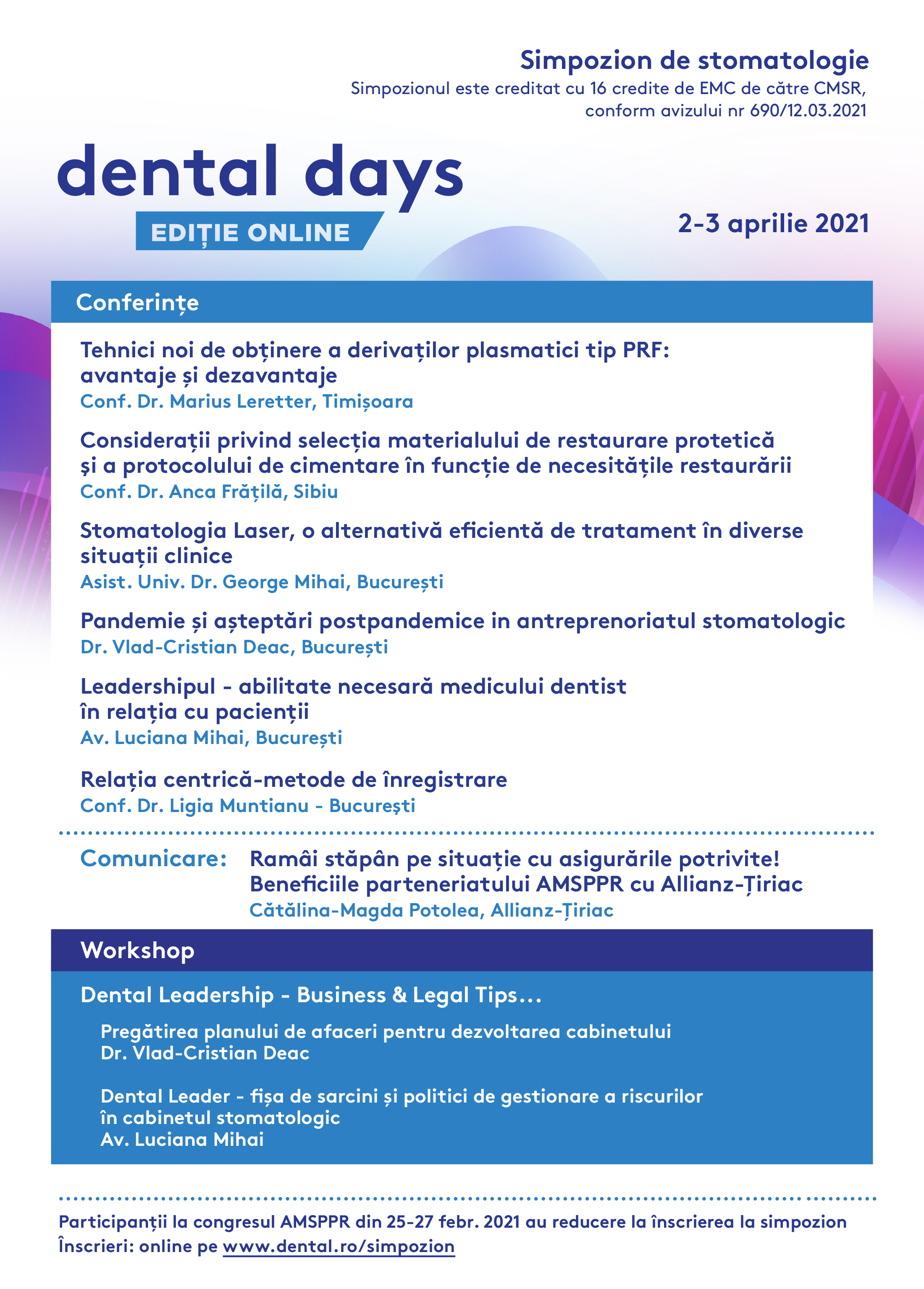 Dental Days - Simpozion de stomatologie - editie online, 2-3 aprilie 2021