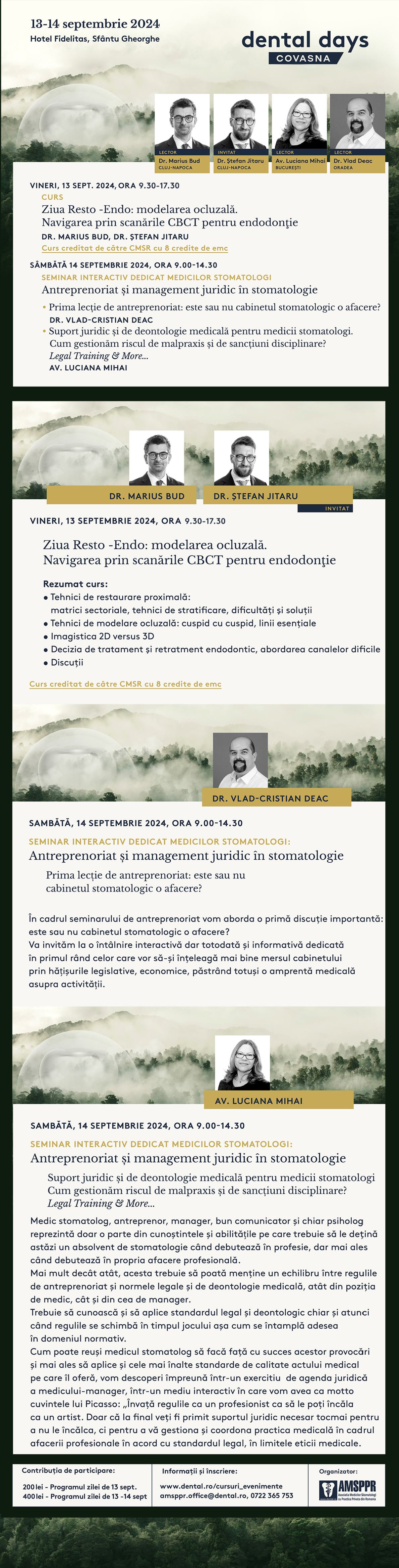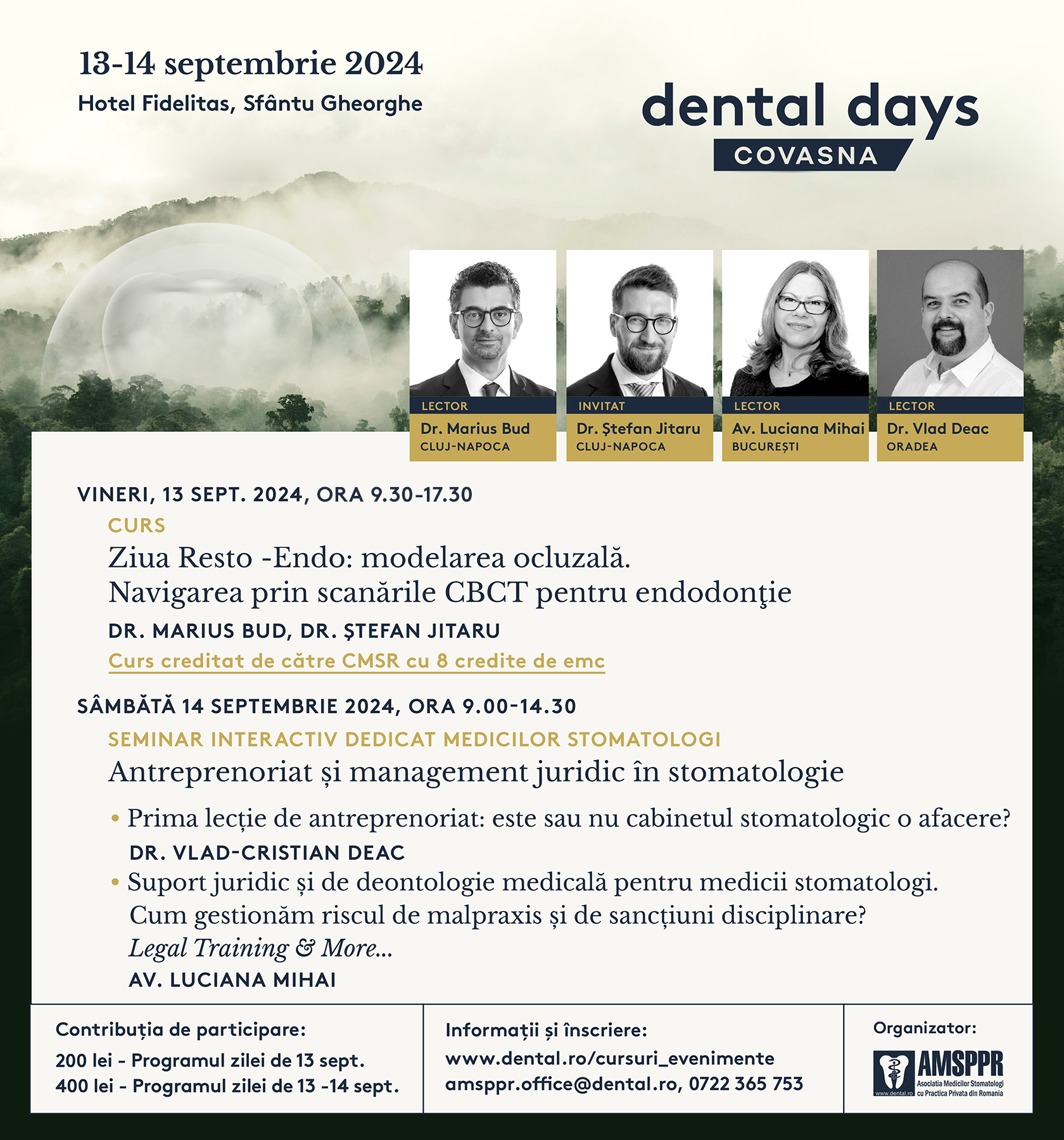 Evenimentele a cărei gazdă este sunt adresate medicilor stomatologi și / sau managerilor de cabinete private, sub deviza: Legal Training & more...
